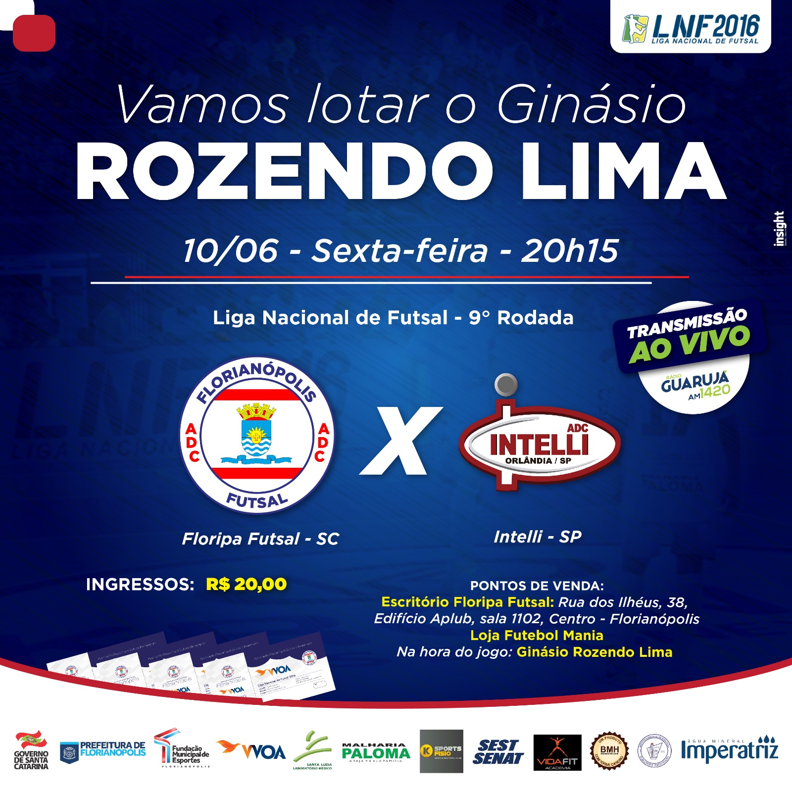 Os ingressos para a partida do Floripa Futsal contra a vice-líder Intelli/Orlândia-SP já estão à venda O duelo válido pela…