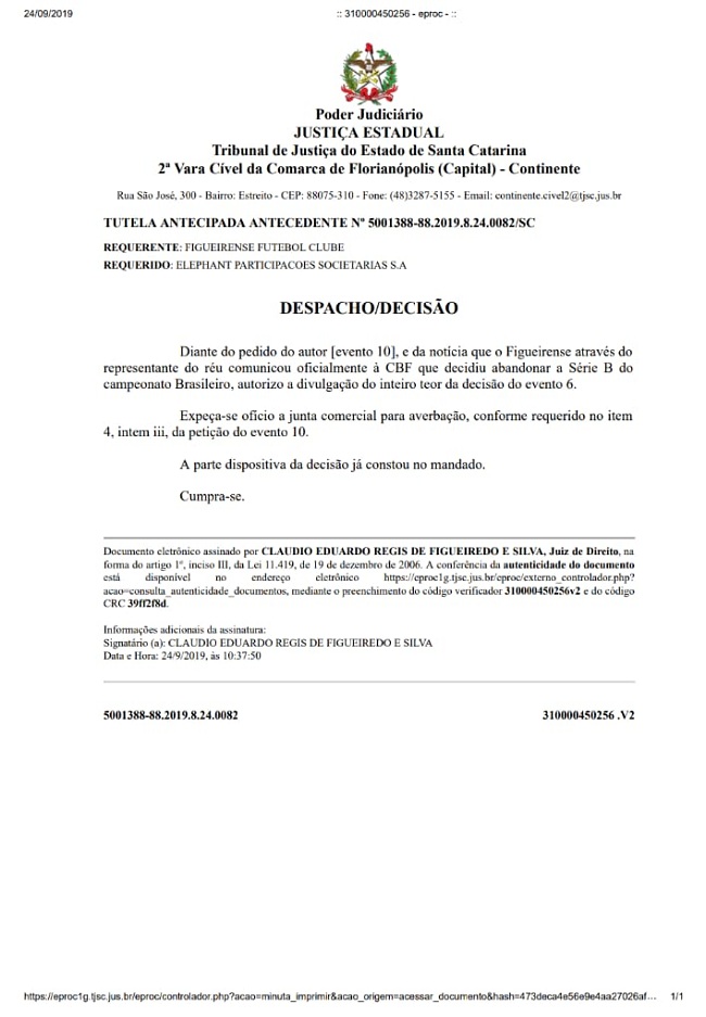 O Figueirense Futebol Clube, por meio desta publicação, disponibiliza a decisão judicial que confirma o rompimento unilateral do contrato de…