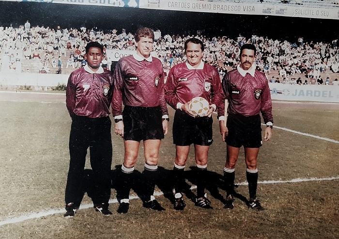 Estádio Olímpico, histórica casa do Grêmio. Da esquerda para a direita: Paulo Ricardo Conceição, Roque Bonnenberg, Dalmo Bozzano e Vayran…