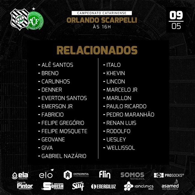 Foram relacionados 23 jogadores pelo técnico Jorginho, para o jogo contra a Chapecoense. As novidades são o zagueiro Gabriel Nazário…