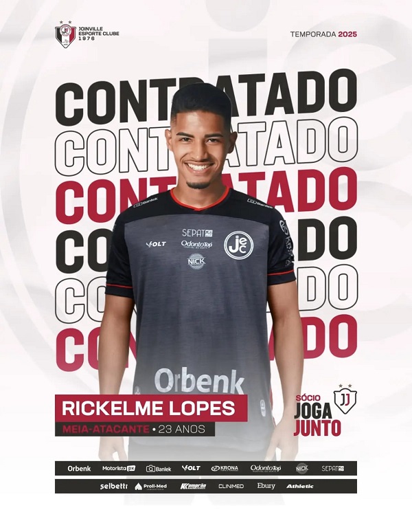 O meio-campista Rickelme Lopes, de 23 anos, é o novo reforço do Joinville para a 2025. O jogador assinou com…