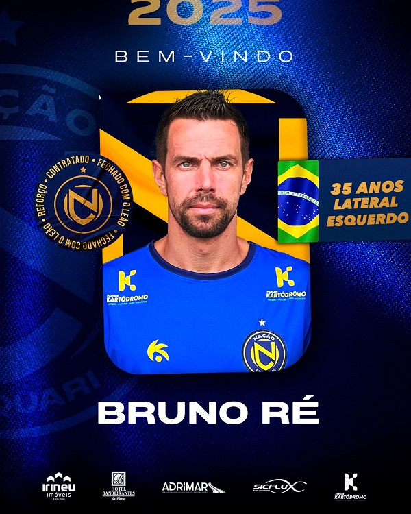 O lateral-esquerdo Bruno Ré, de 35 anos, é o novo reforço do Nação Araquari. Bruno Ré acumula passagens por Guarani…