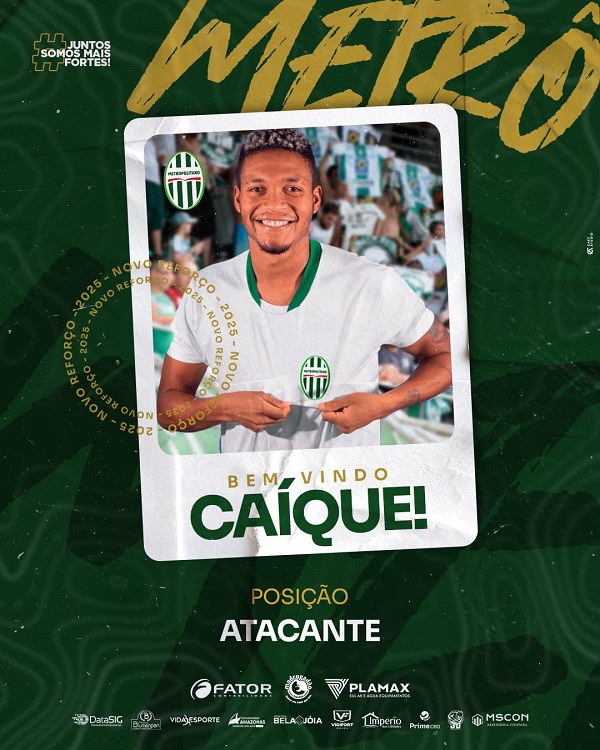 O Metropolitano anuncia o atacante Caíque, de 27 anos, que fez gol no título do Piauí EC no estadual piauiense…