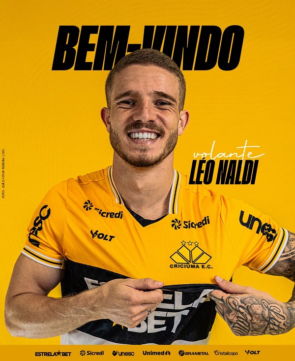 O Criciúma confirmou neste sábado (7), a contratação do meio-campista Léo Naldi. O atleta, que estava no Atlético Goianiense, chega…