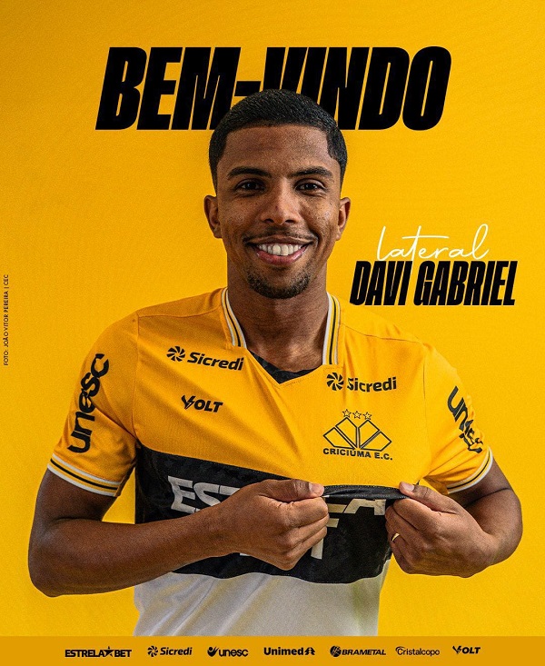 O Criciúma anuncia o lateral-esquerdo Davi Gabriel, com contrato até o final da temporada 2026. Davi Gabriel, de 27 anos,…