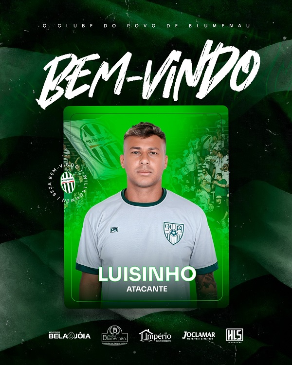 Clube de Blunenau anuncia o ponta Luisinho, de 24 anos, canhoto, e cujo ultimo clube foi o Desportivo Brasil/SP, na…
