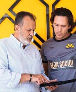 Presidente da FCF, Rubens Angelotti entregou a medalha Norberto Hoppe ao atacante Nicolas, que foi o artilheiro do Catarinense 2026 com 6 gols.