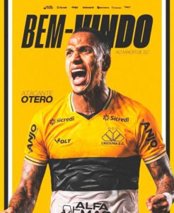 O Criciúma anuncia a contratação de mais um atacante para a temporada 2026. O venezuelano Otero, que estava no Nacional do Uruguai, é o novo reforço do Tigre para a disputa da Série B do Campeonato Brasileiro. O clube aguarda a chegada do atleta no CT Antenor Angeloni para realizar os exames médicos e posteriormente assinar o contrato de um ano.
