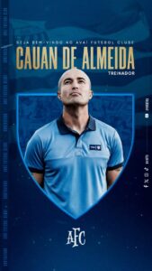 O Avaí FC anuncia novo treinador . Trata-se de Cauan de Almeida, de 36 anos, fez base no América/MG, fez parte da comissão técnica da Seleção Brasileira Sub-17, que posteriormente conquistou o título mundial em 2019, e vem de dois trabalhos nas últimas duas temporadas à frente do América/MG, em 2024, e Portuguesa, em 2025. Além disso, acumulou experiência como auxiliar técnico no Corinthians, Internacional, Vasco da Gama e no próprio América Mineiro.