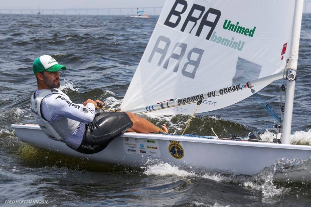 Velejador venceu as duas regatas desta segunda e assumiu a ponta em busca do sétimo título nacional após o segundo dia de competições na Baía de Guanabara – Foto: Fred Hoffmann