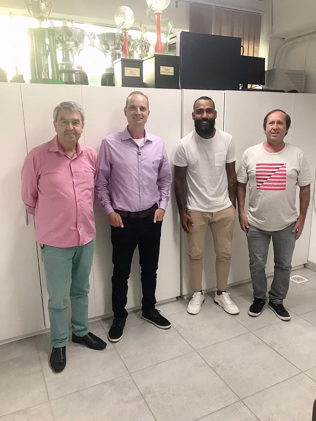 Treinador do Metropolitano, Dyego Coelho (o de barba) foi recebido pelos dirigentes do clube de Blumenau, no CT Romeu Georg,…