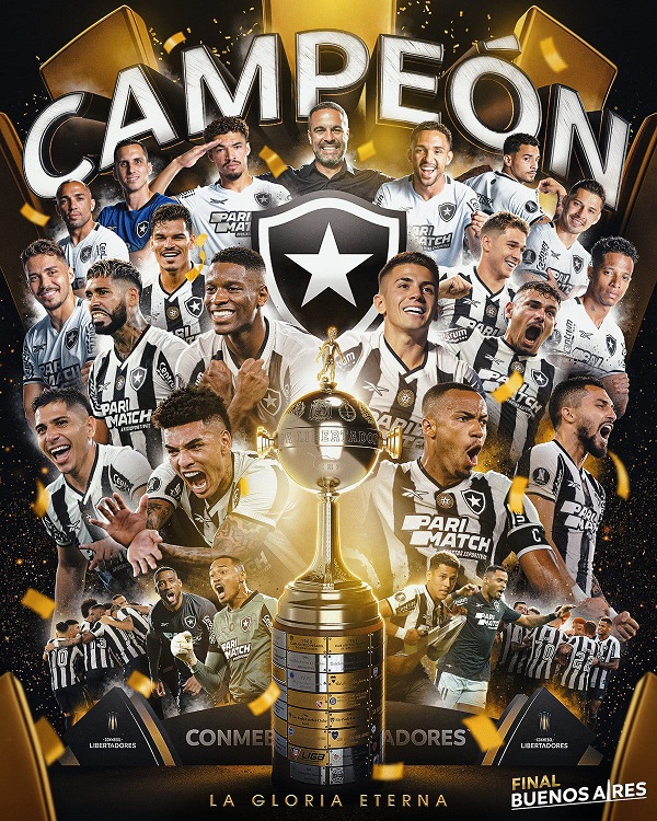 Botafogo, campeão da Libertadores 2024. E jogou com 10 jogadores desde os 29s do primeiro tempo, com a expulsão do…