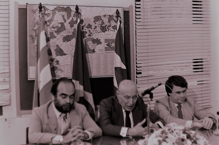 Conselho Técnico da Federação Catarinense de Futebol em 1987, ou seja, foto com 33 anos de história. Da esquerda para…