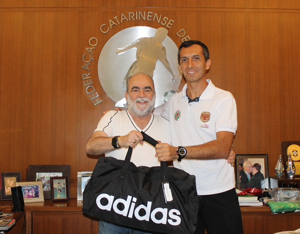 O árbitro assistente catarinense Kléber Lúcio Gil, que integra o quadro de arbitragem da Federação Catarinense de Futebol e também o quadro internacional da FIFA, esteve na tarde desta 4ª feira, 23, na sede da FCF, onde recebeu das mãos do presidente Delfim Pádua Peixoto Filho, os materiais e uniformes para eventos da FIFA. Kleber esteve na última semana no México, onde atuou na partida Pumas 4X1 Táchura, válida pela 4ª rodada do grupo 7 da Copa Libertadores da América 2016.