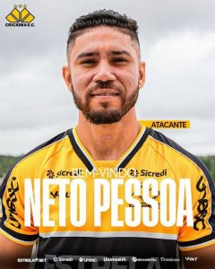 Criciúma anuncia o atacante Neto Pessoa, de 30 anos, natural de Rio Branco (AC). O atacante iniciou a carreira em clubes do Acre, como Plácido de Castro, Rio Branco e Atlético Acreano. Ele teve destaque em passagens pelo ABC, Ypiranga de Erechim, Botafogo/SP e Remo, e após atuar no futebol da Malásia, retornou ao Brasil no Vila Nova.