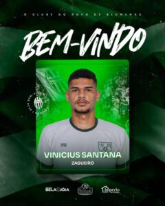 Com passagem recente pelo futebol português, o zagueiro Vinicius Santana, de 26 anos, é o terceiro reforço confirmado pelo Metropolitano de Blumenau para a Série B do Catarinense.