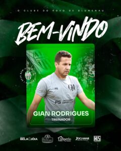 O Metropolitano de Blumenau anuncia o treinador Gian Rodrigues, paulista, de 54 anos, que foi técnico do Jataiense/GO no início desta temporada, onde teve a terceira melhor campanha do primeiro turno do Campeonato Goiano.